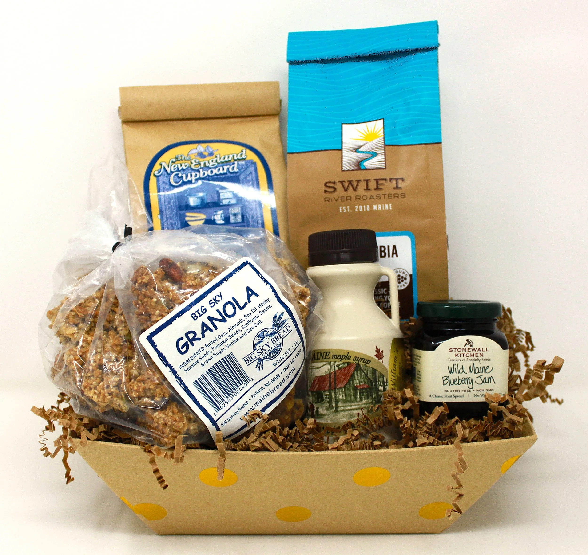 Cozy up to the Maine table with our own Swift River Roasters coffee, fluffy pancake mix, sweet toppings, and fan favorite Big Sky Granola.